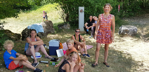 Rencontre en bas de Charlotte avec qui je termine ce trail, je la pousse dans les montées et elle me guide dans les descentes ( je suis ces pas) nous traversons la route avec des bénévoles qui nous encouragent, encore de belles montées, la fatigue commence à se faire sentir mais je grimpe à l'aide de mes bâtons, une famille bien accueillante nous offre de l'eau,ça grimpe encore, un peu de faux plat et la descente qui est plus que technique pour moi, cailloux rochers pierres passages étroits ( on se fait doubler par des mecs du 33 kms qui passent en courant),je fais gaffe c'est dur je suis fatiguée, mes pas ne sont plus précis je glisse petite chute sans bobo, retour sur le bitume pour la fin, j'attrape loki qui m'attend avec mon mari et mon fois et passe la ligne d'arrivée épuisée mais heureuse.Je boucle cette belle aventure en 2h46mn, en fin de peloton...Un repas copieux nous attend à la salle des fêtes ( compris dans l'inscription).Parcours sublime on en prend plein les mirettes et plein les pattes, une organisation top et des bénévoles super. Trail à faire.